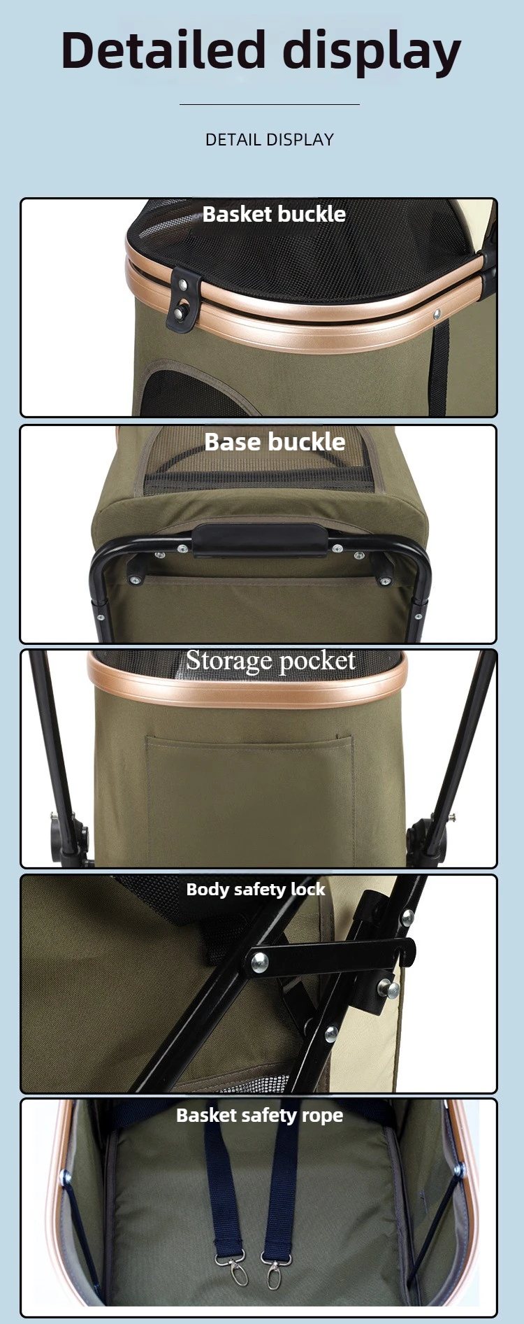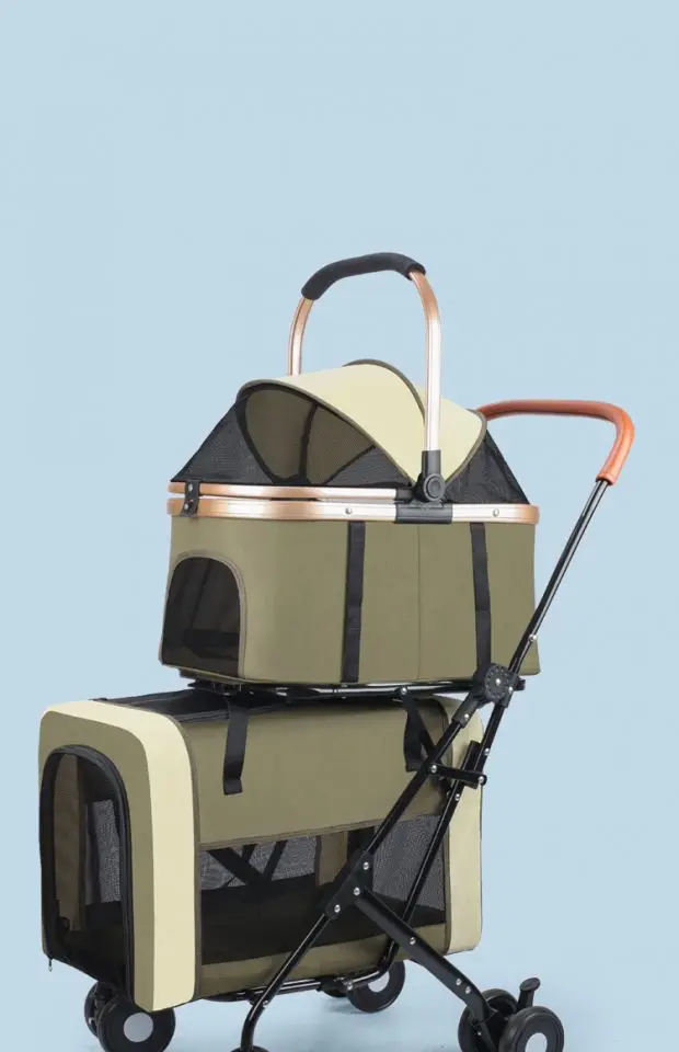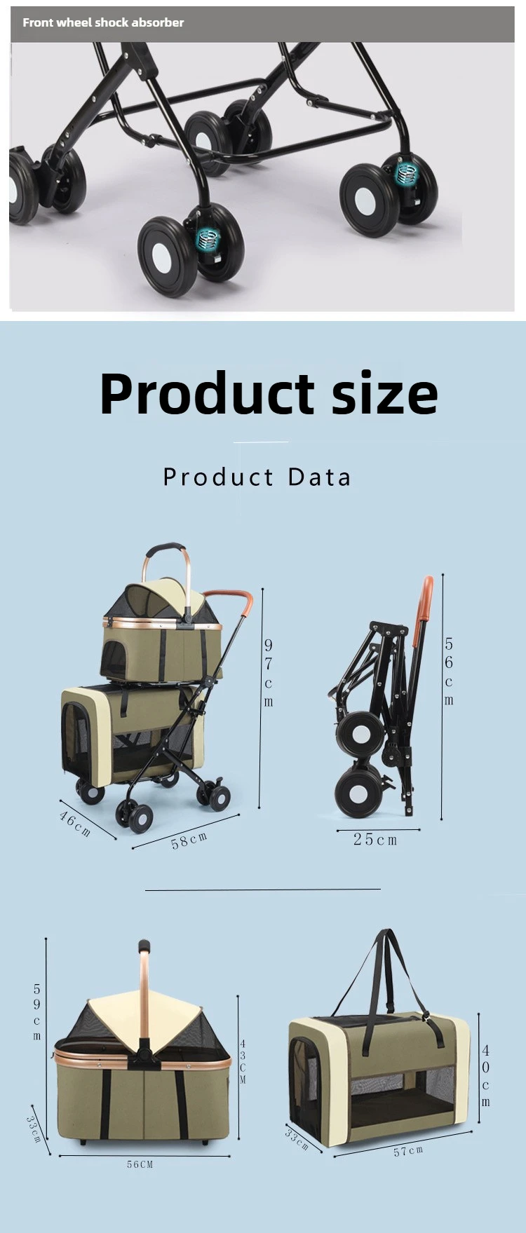 Detachable Double-decker Pet Stroller Cat and Dog Outdoor Stroller Lightweight Foldable Pet Stroller Portable Pet Basket